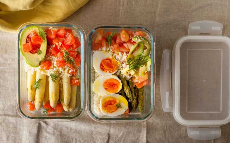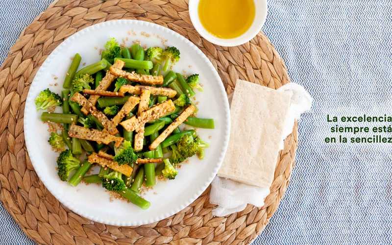 Ensalada de espárragos y coliflor para llevar con sal Maldon