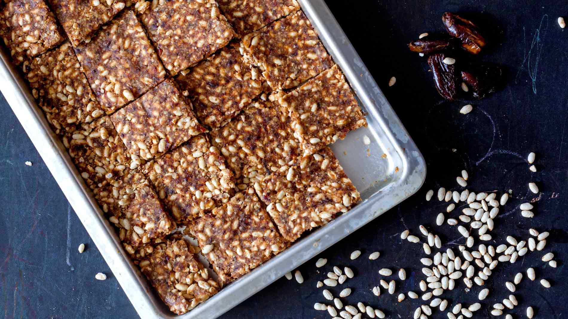 Estas barritas tienen avena y arroz inflado, dátiles y crema de cacahuete. Son la adictivas, no puedes parar de comerlas, pero luego, te aseguro que estarás satisfecho, porque la grasa es lo que tiene: llena. Además que le da palatabilidad a los alimentos, por eso, las comidas sin suficiente grasa son sosas, alimentos como los yogures o quesos sin su grasa, además del sabor, la textura es parecida al cartón.