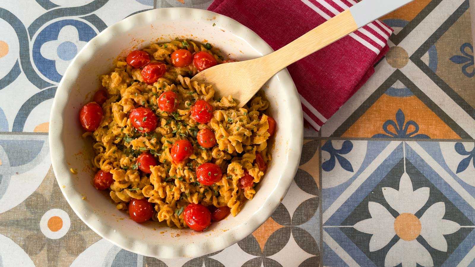 PASTA CON HUMMUS SACIANTE Y NUTRITIVA