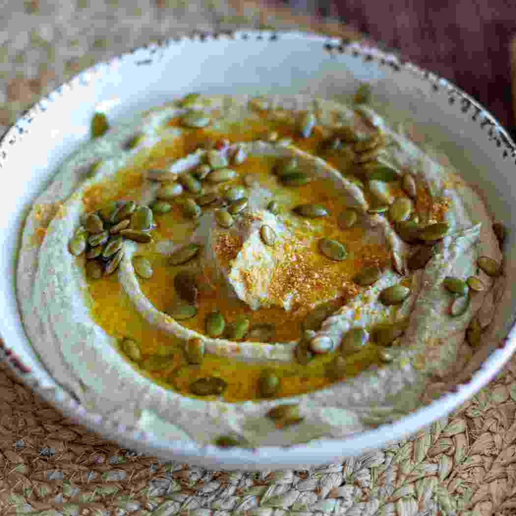 - Mientras se hornean, tritura el aguacate con el kéfir, sazona a tu gusto y reserva.