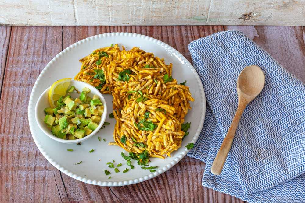 Hash brown de plátano macho con salsa kéfir y aguacate