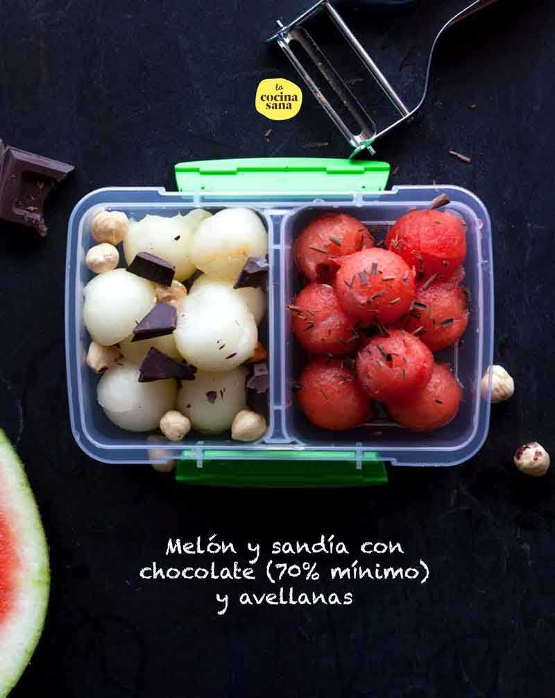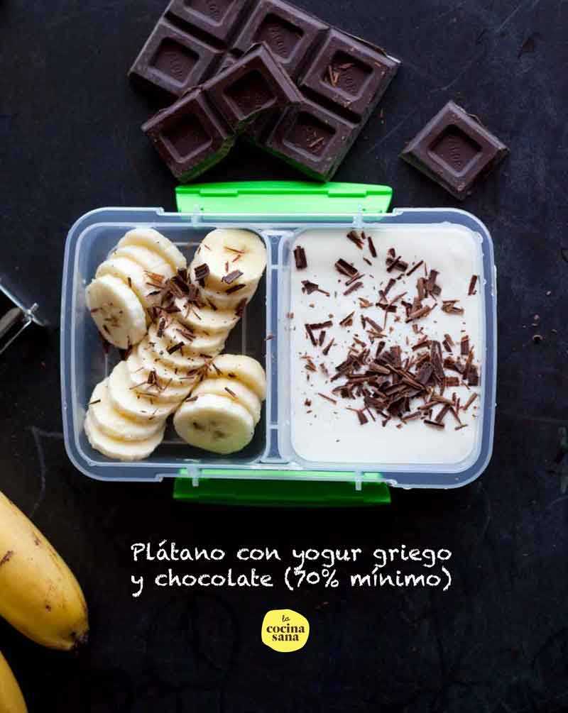 La presentación de una fiambrera saludable es todo, arma mucho una merienda y el chocolate en trozos o rallado le da un toque irresistible. Para hacerlo redondo, añade frutos secos. Si te preguntas si aguantará hasta la hora del almuerzo, te garantizo que sí.