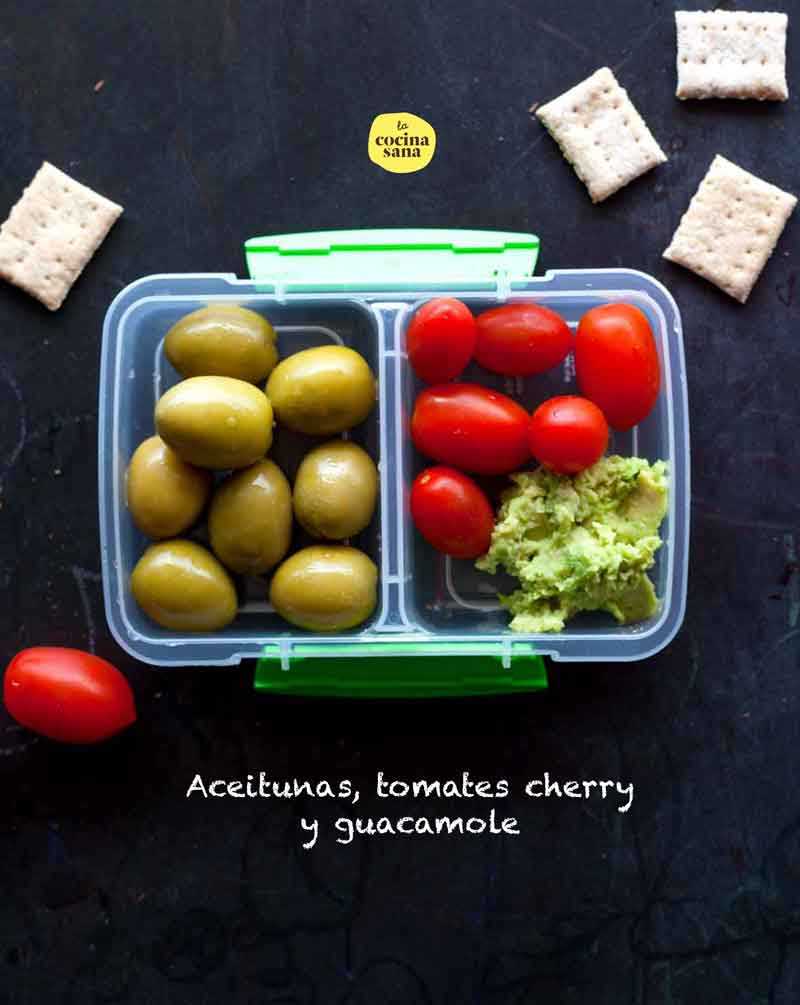 Te invito a hacer crackers de harina de espelta integral para complementar este snack muy completo. No te olvides de añadir unas gotas de limón al guacamole para que no se oxide y de tapar bien tu tupper saludable. Aguanta en perfecto estado desde la mañana a la hora del recreo. ¿Qué te parece añadir unos pepinillos o granos de maíz?