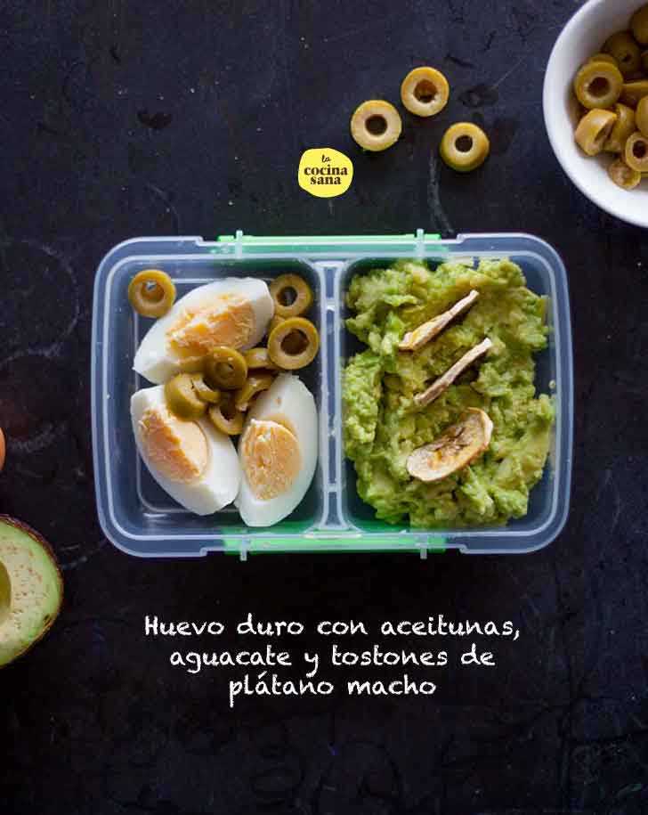 El huevo es la proteína con más alto valor biológico que existe, y además, un alimento muy fácil de transportar cuando está cocido. Consume preferiblemente huevos con códigos 1 y 2. En América, los que se denominan "Cage free". Acompaña con guacamole, chips de plátano macho. ¡Aperitivo redondo!