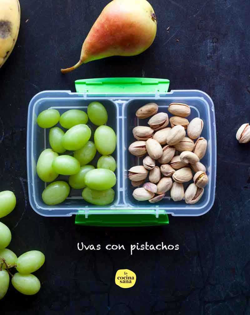 Parece que mandar al niño con fruta al colegio es poca cosa. Pues no. Los frutos secos son recomendables solo para los mayores de 4 años porque es cuando se reduce el riesgo de atragantamiento con ellos. La uva es una fruta muy cómoda para transportar y comer. También puedes preparar un tupper con frutas secas como dátiles y ciruelas pasas.