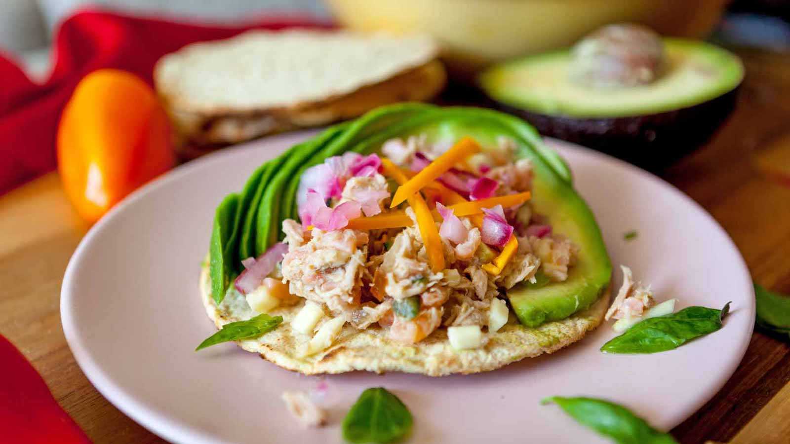 Para aquellos que están con una dieta cetogénica y quieren evitar el carbohidrato por este momento, podrías comer las tostadas de maíz si te cuadra con tus macros. Si no, es mejor recurrir al salmón ahumado en lonchas. Rellena el salmón con la ensalada y envuelve. Tostadas y "taquitos de salmón" están para chuparse los dedos.